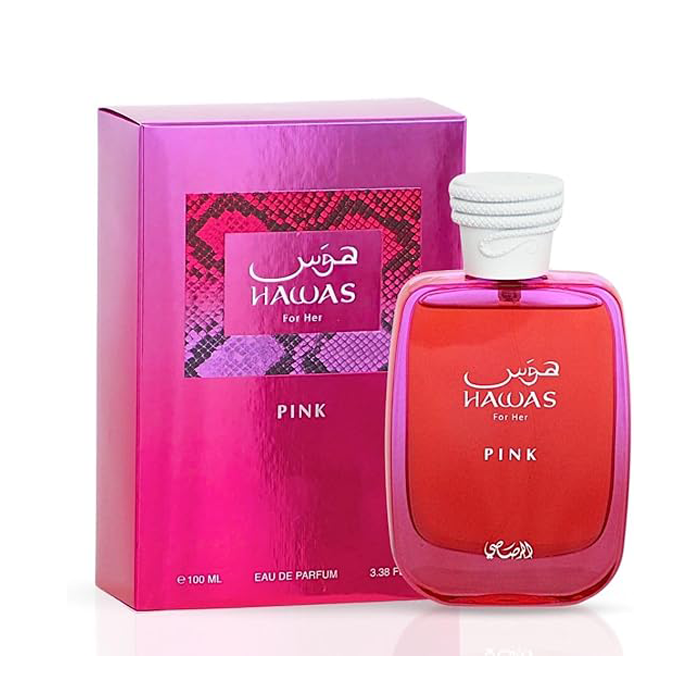 Hawas Pink is a bold yet playful fragrance that embodies confidence and elegance. A perfect blend of warmth and sweetness, it opens with a fresh and spicy allure, transitions into a delicate floral heart, and settles into an addictive, gourmand finish. Designed for those who love to make a statement, this captivating scent is perfect for both day and night.